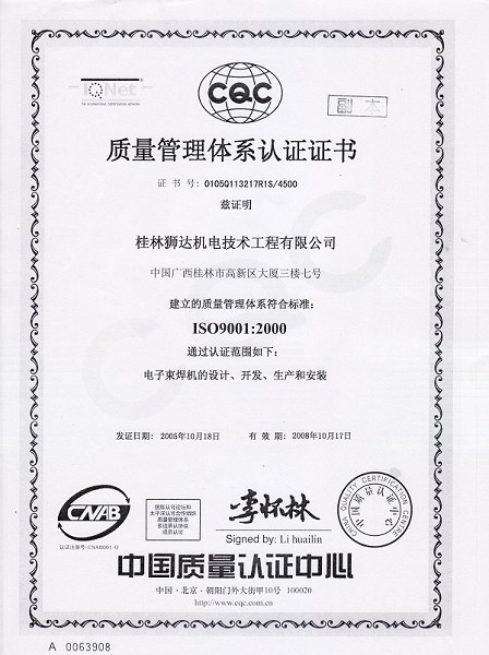 質(zhì)量管理體系認(rèn)證證書